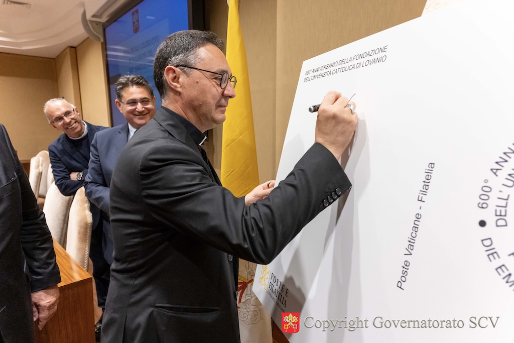 La presentazione del Francobollo celebrativo vaticano in occasione del 600° anniversario della Fondazione dell’Università di Lovanio è solo un ulteriore segno tangibile del valore della vostra opera, che esprime il sentimento di riconoscenza che la Chiesa nutre per la vostra grande missione.