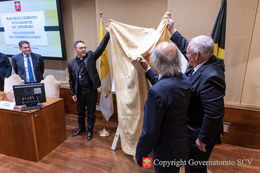 L’emissione filatelica è stata svelata con un incontro ufficiale, svoltosi martedì pomeriggio, 28 ottobre, nella sala conferenze dei Musei Vaticani. Vi hanno partecipato, tra gli altri, l’Arcivescovo Emilio Nappa, Segretario Generale del Governatorato, Monsignor Jean Kocherols, Vescovo ausiliare di Malines-Bruxelles, S.E. il signor Bruno van der Pluijm, Ambasciatore del Belgio presso la Santa Sede, l’ingegner Antonino Intersimone, Direttore della Direzione delle Telecomunicazioni e dei Sistemi Informatici, don Felice Bruno, Capo Ufficio del Servizio Poste e Filatelia e Marc Vervenne, Rettore onorario della KU Leuven.