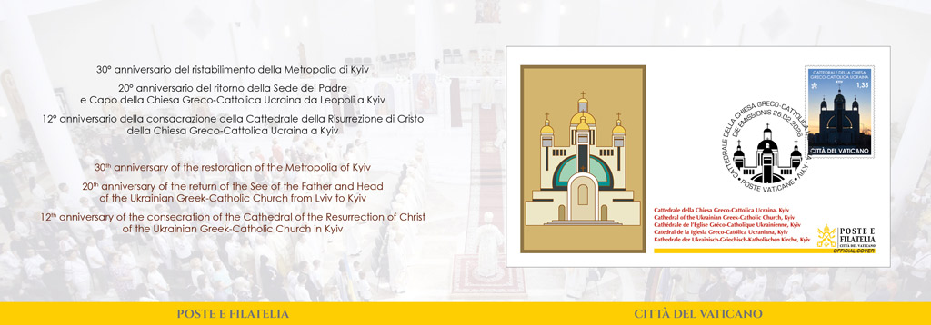 Per commemorare un triplice anniversario dedicato alla Chiesa greco-cattolica in Ucraina, verranno emessi un folder con busta-ricordo a tiratura limitata, un francobollo e un annullo postale speciale die emissionis, dedicati alla Cattedrale di Kyiv. Vogliono ricordare il 12° anniversario della consacrazione della Cattedrale della chiesa greco-cattolica di Kyiv, il 20° anniversario del ritorno della Sede del Padre e Capo della Chiesa greco-cattolica ucraina da Leopoli a Kyiv e il 30° anniversario del ristabilimento della Metropolia di Kyiv.