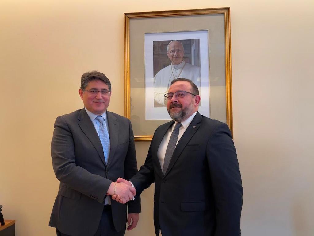 On Wednesday, March 25, a delegation led by the CEO of Poste Albania, Etien Xhafaj, visited the headquarters of Vatican Post, where they were welcomed by the Director of Telecommunications and Information Systems, Antonino Intersimone, and the Head of the Postal and Philatelic Service, Rev. Felice Bruno.