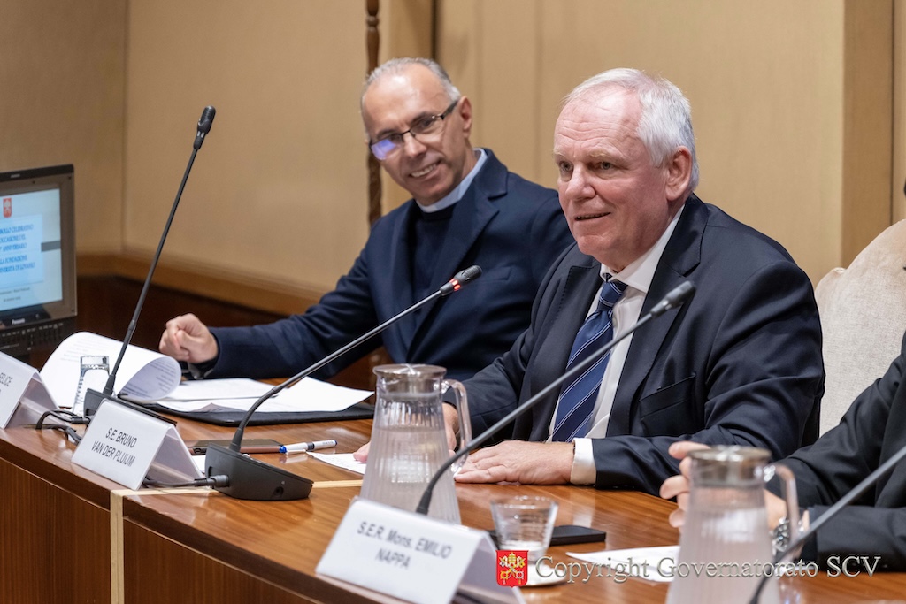 L’emissione filatelica è stata svelata con un incontro ufficiale, svoltosi martedì pomeriggio, 28 ottobre, nella sala conferenze dei Musei Vaticani. Vi hanno partecipato, tra gli altri, l’Arcivescovo Emilio Nappa, Segretario Generale del Governatorato, Monsignor Jean Kocherols, Vescovo ausiliare di Malines-Bruxelles, S.E. il signor Bruno van der Pluijm, Ambasciatore del Belgio presso la Santa Sede, l’ingegner Antonino Intersimone, Direttore della Direzione delle Telecomunicazioni e dei Sistemi Informatici, don Felice Bruno, Capo Ufficio del Servizio Poste e Filatelia e Marc Vervenne, Rettore onorario della KU Leuven.