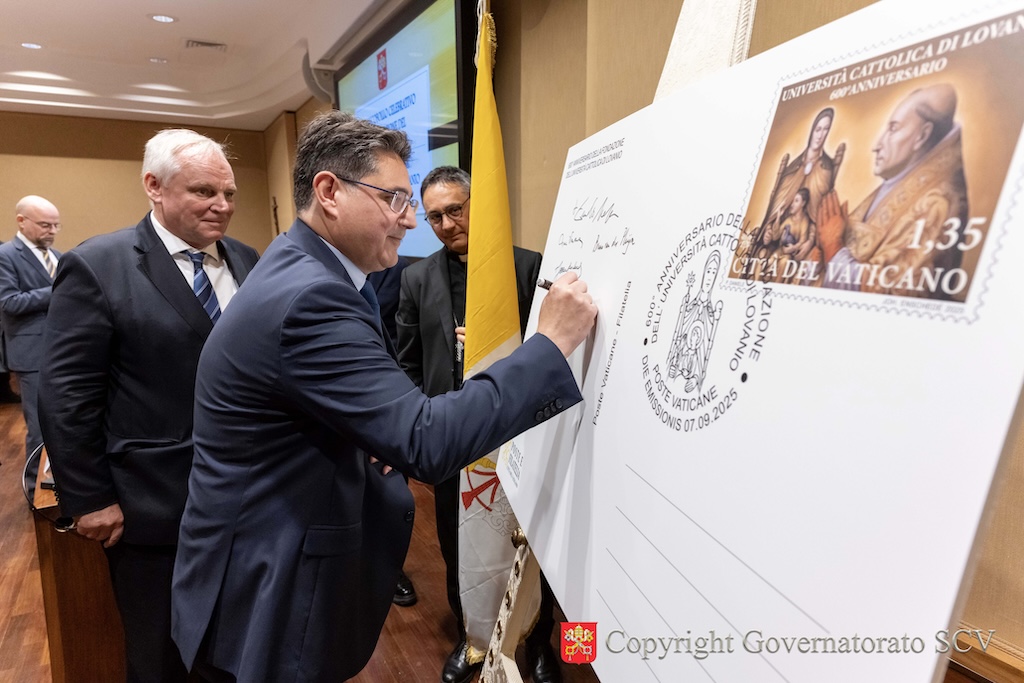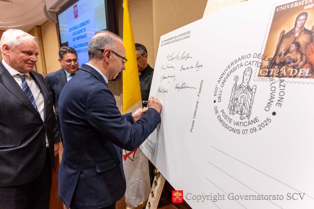 La presentazione del Francobollo celebrativo vaticano in occasione del 600° anniversario della Fondazione dell’Università di Lovanio è solo un ulteriore segno tangibile del valore della vostra opera, che esprime il sentimento di riconoscenza che la Chiesa nutre per la vostra grande missione.